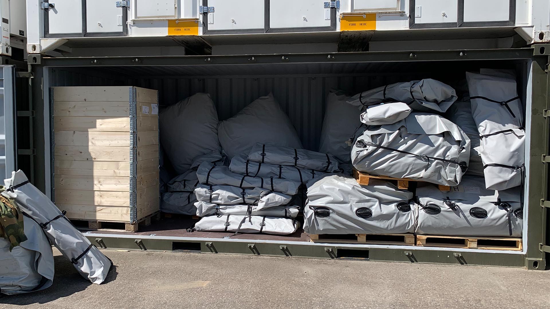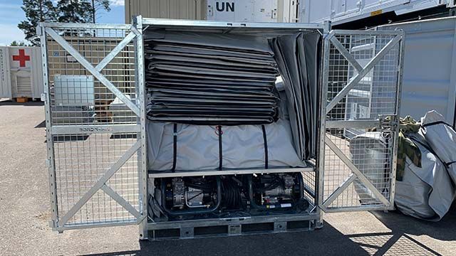 Most equipment is delivered on pallets and in cardboard boxes which are not suiteable for deployment.